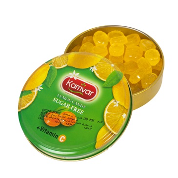 آبنبات رویال بدون قند و رژیمی با طعم لیمو قوطی 150 گرمی کامور
